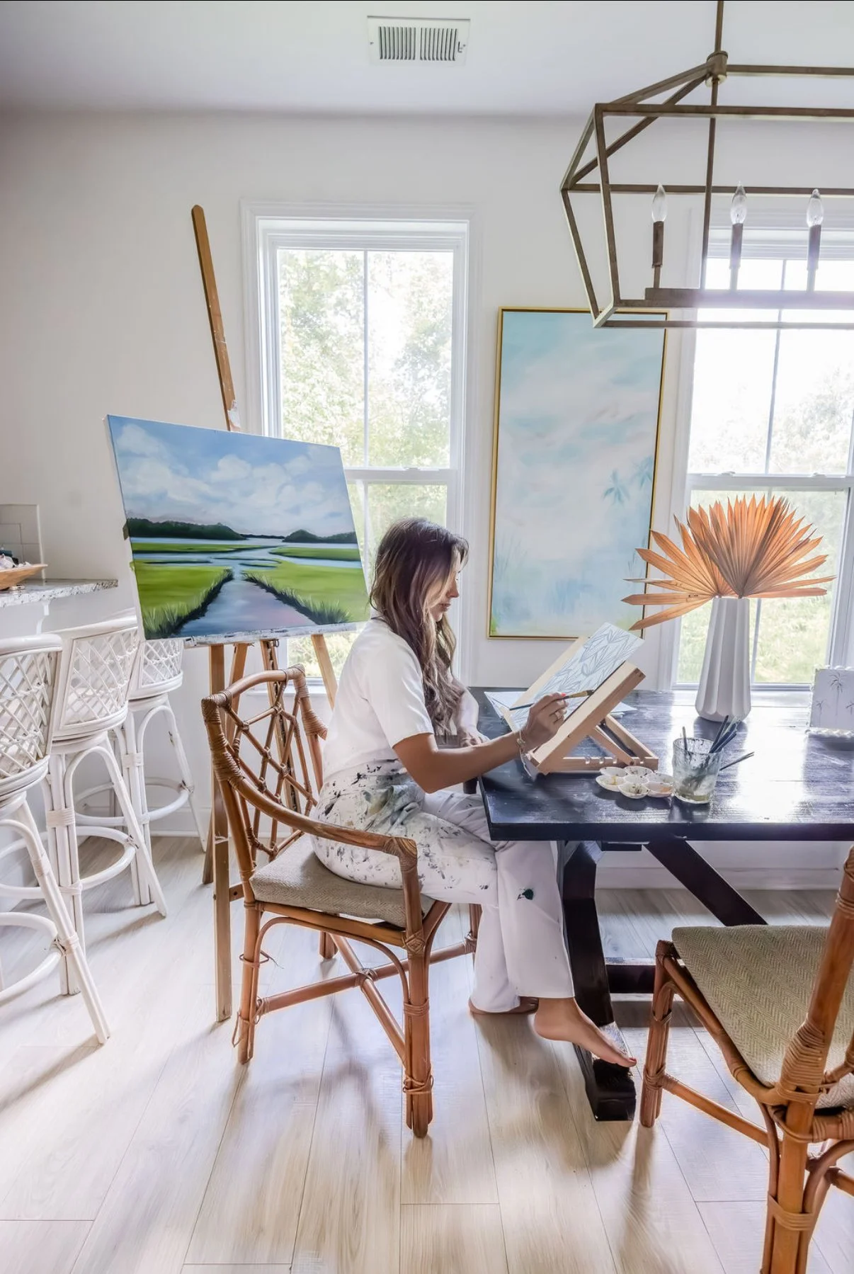 Heidi Oates started to study art at Winthrop University. After 4 years of AP art at her high school she was quite honestly burnt out and quickly changed her major after realizing she would be doing 3 hour studios just in her first semester. Art took a back seat during these years until she was a young married mama who missed pursuing her passion. A seed was planted in her head to be home with her babies and she didn’t know what that would look like. Through utilizing her creative outlet she made numerous things, wood signs, hand painted lettering, and more. None filled her soul back up or was quite therapeutic as painting had once been. In 2015 she picked back up her brushes and hasn’t looked back. Heidi loves painting commissions, murals, handpainted wall art and more.